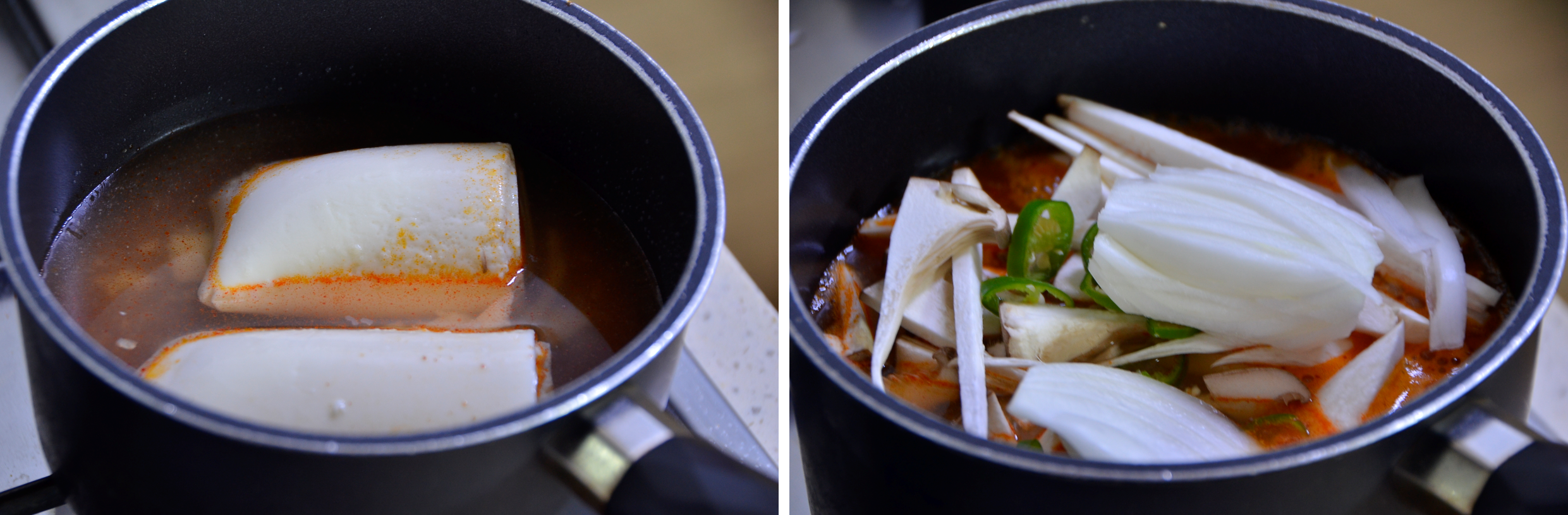 순두부와 양념까지 준비했으니 이제 함께 넣어 끓여주기만 하면 됩니다.