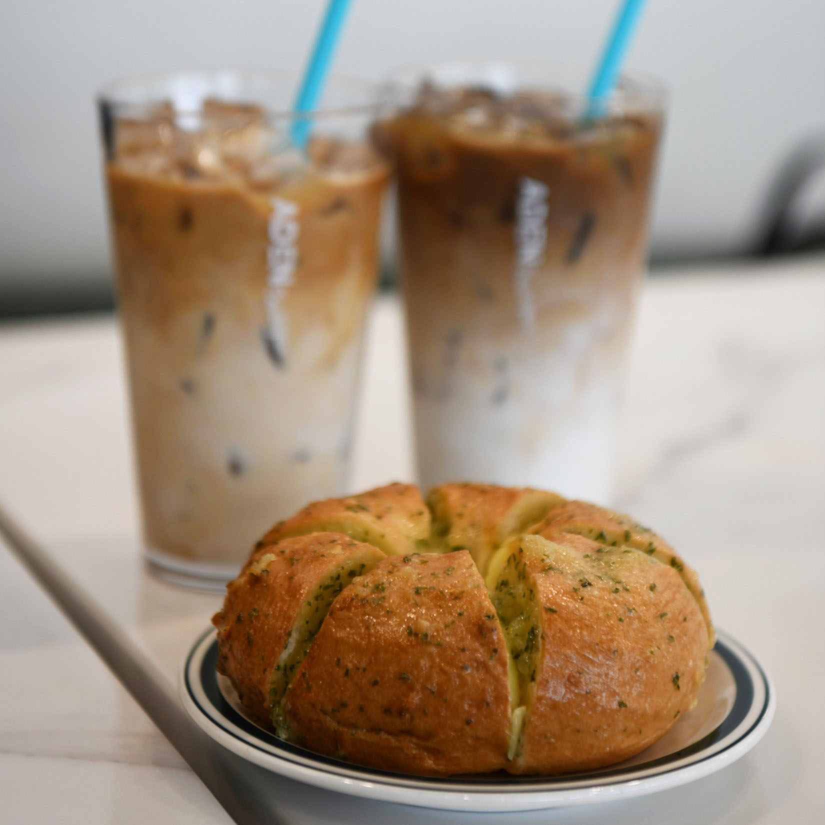 자칭 빵순이라 부르고 커피를 가장 좋아하는 아내가 선택한 메뉴는 제눈에도 유난히도 맛있어 보이는 갈릭 베이글과 콜드브루라떼, 저는 카페라떼를 시켜줍니다.