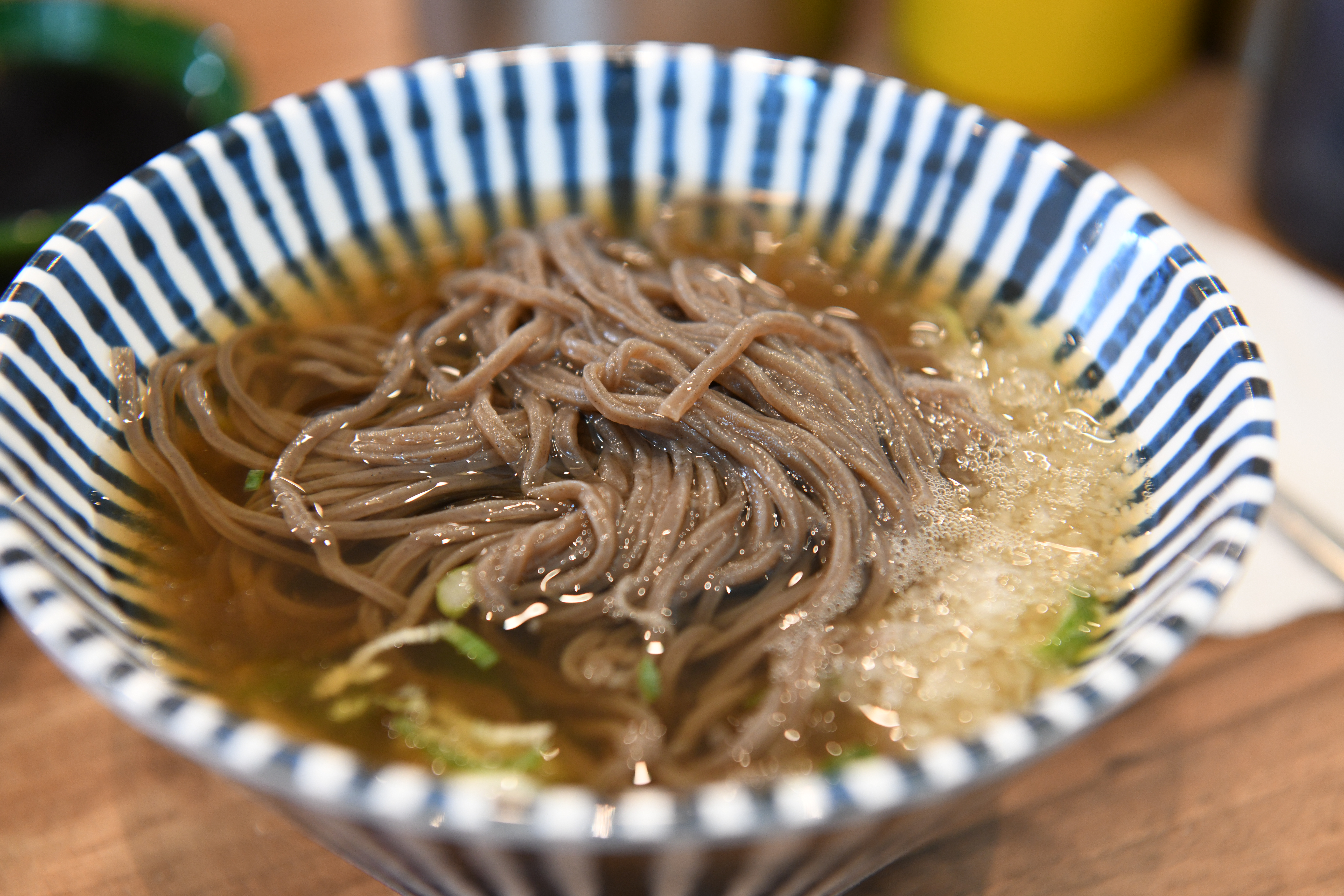 모밀 한 덩이를 육수에 넣었습니다.