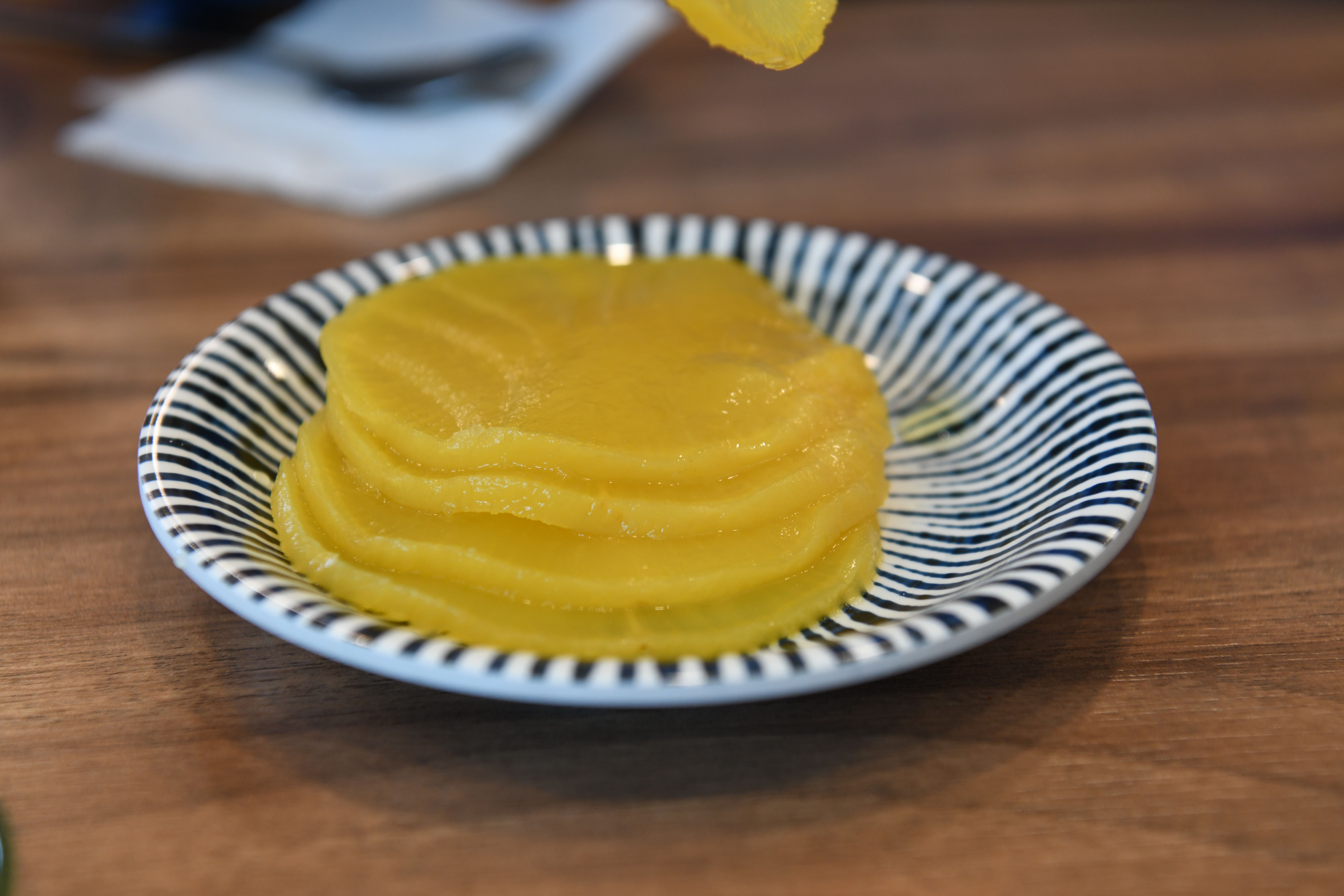 음식이 나오기 전에 셀프코너에서 단무지를 가져옵니다.