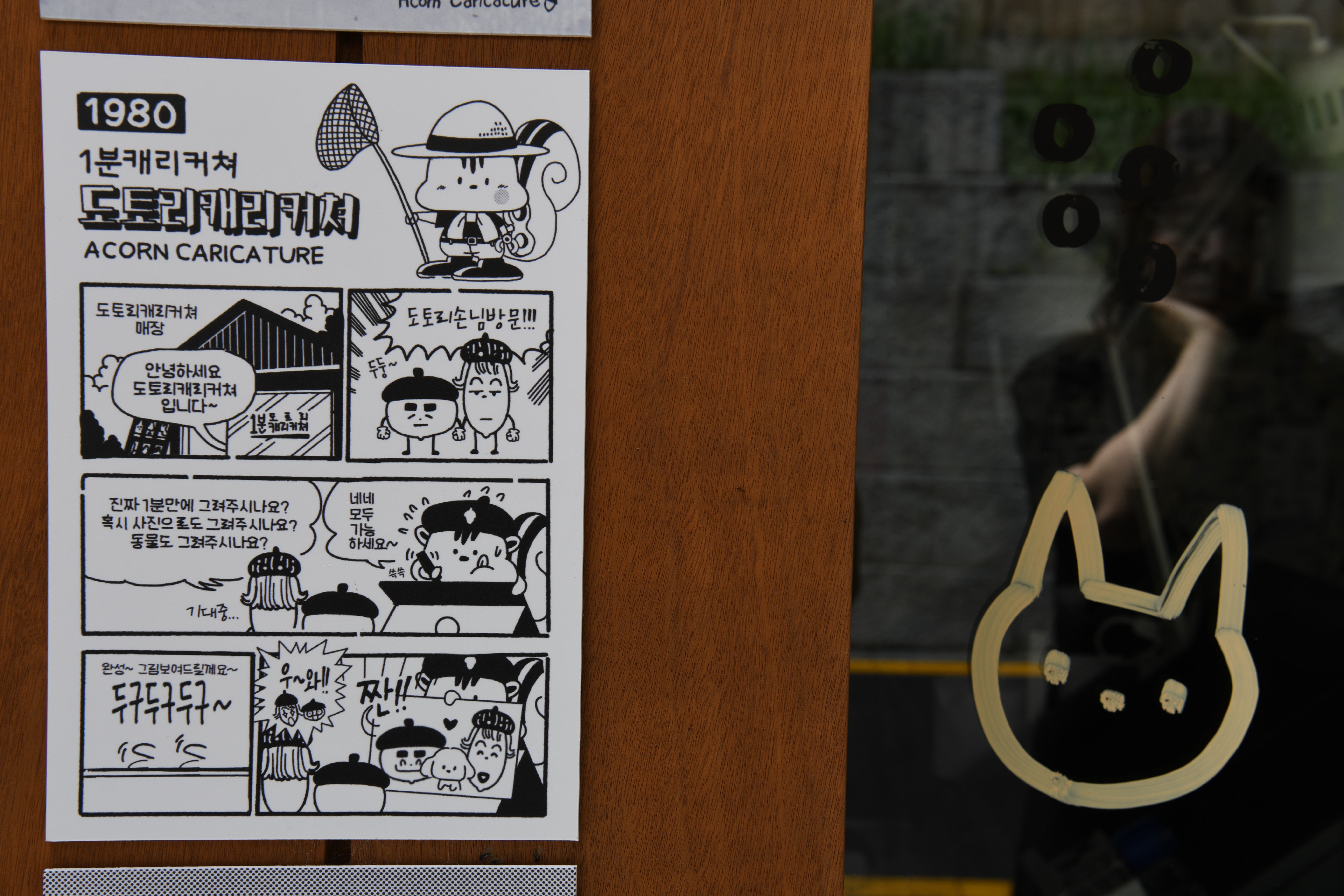오전 11시경 찾은 도토리 캐리커쳐는 아직 영업 전입니다.