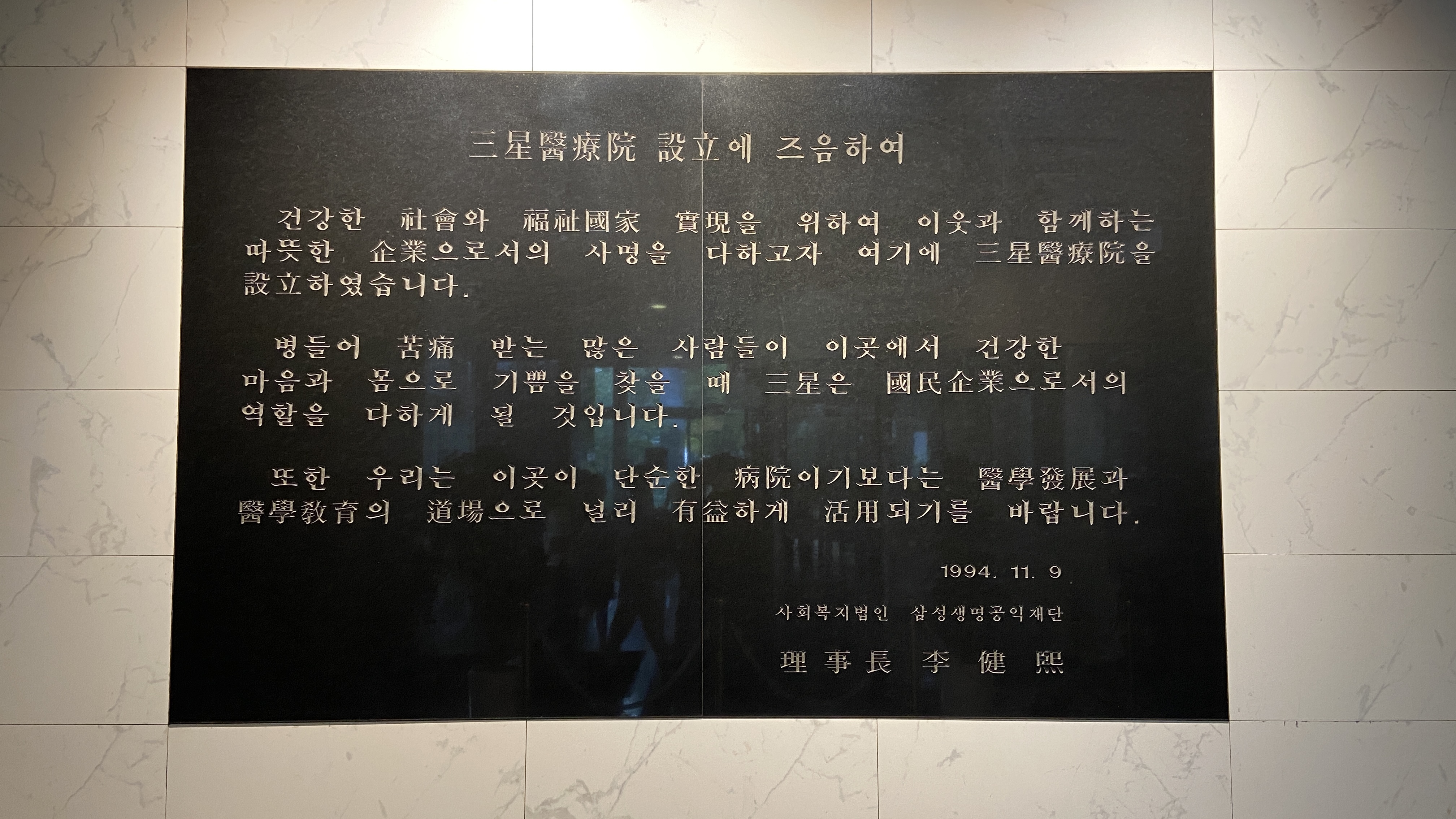 마지막으로 삼성병원에 오면 출입구 한편에 걸린 현판을 소개드립니다.