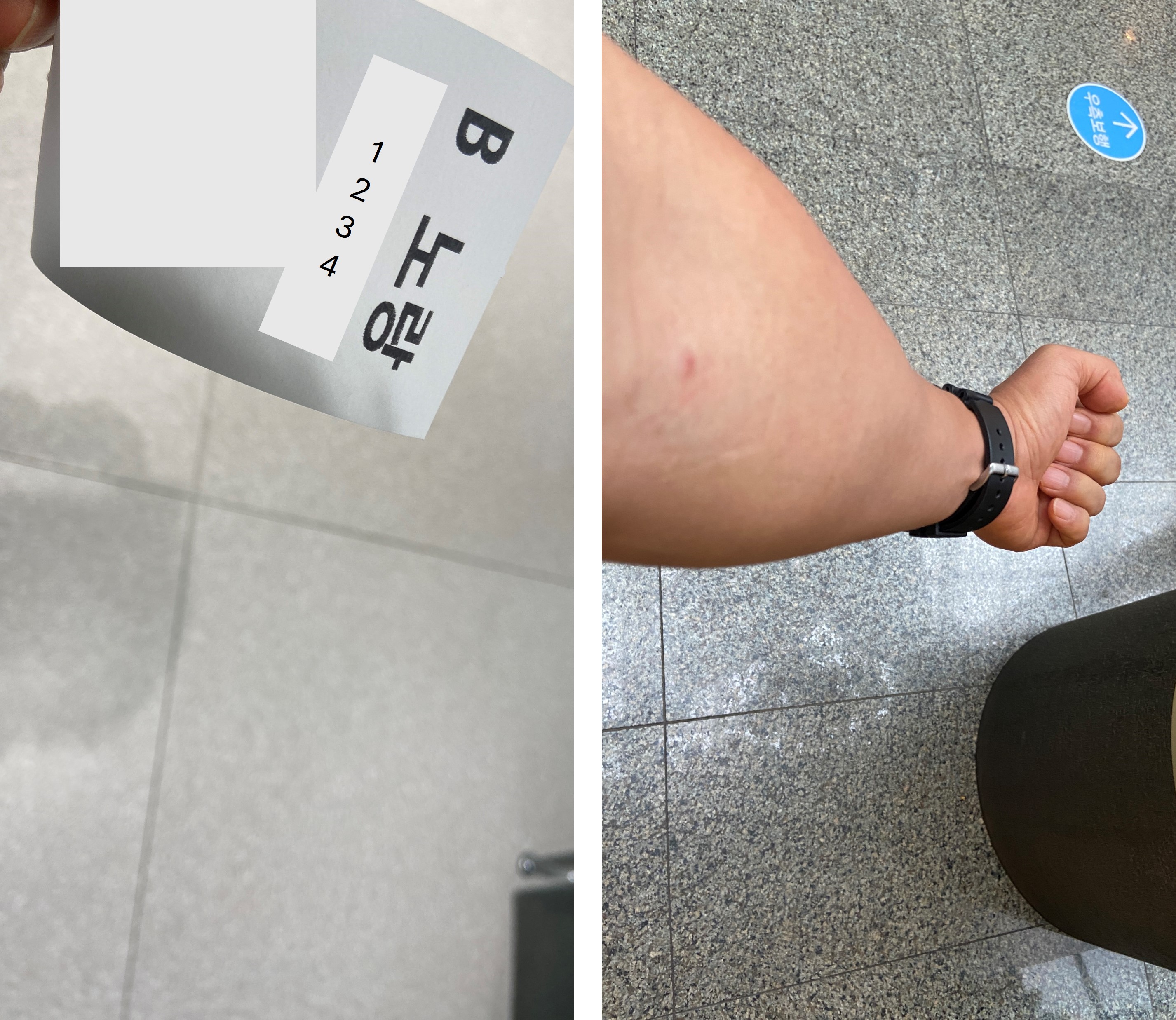 혹시나 해서 팔을 보는데 멍이 들 기미조차 보이지 않습니다.