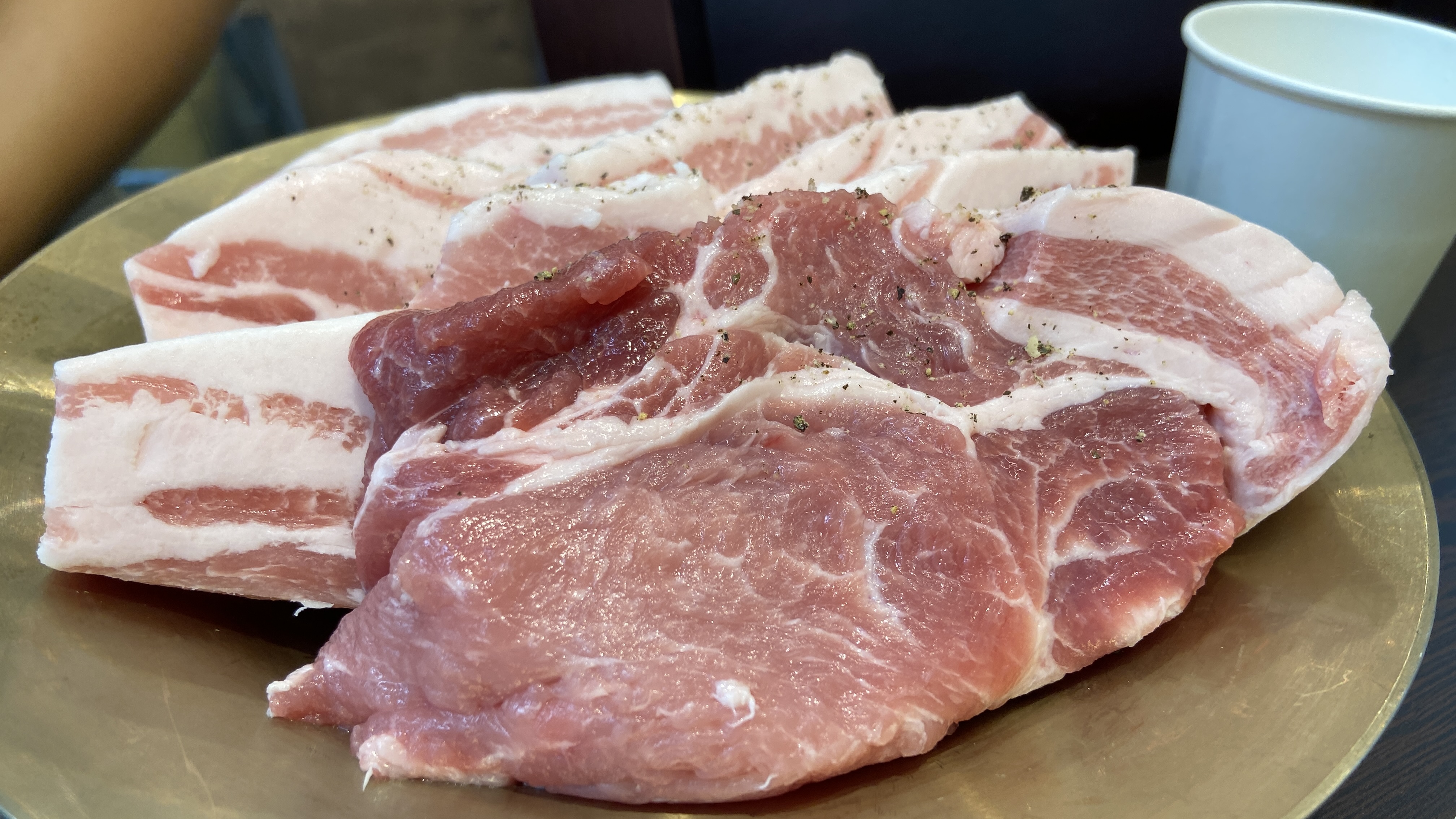 저희는 삼겹살 먹기 어려울거라 생각 한 저를 위해 생목살 하나와 생삼겹살 세 개를 주문합니다.