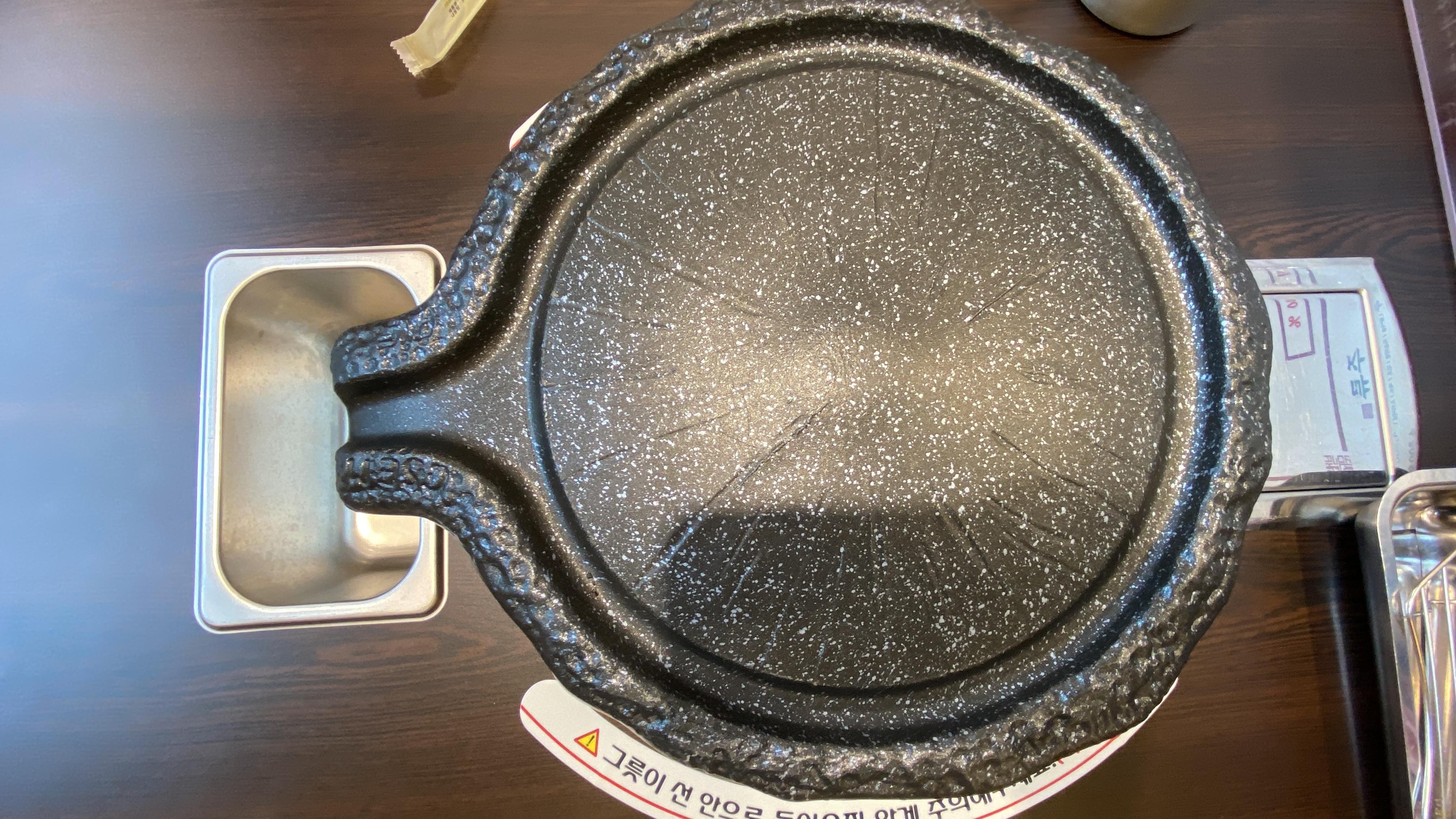 돌판이 묵직한게 잘 달구어지면 고기가 참 맛있을 것 같다는 생각이 듭니다. 기름까지 잘 흘러내리도록 홈이 깊게 파져 있어 담백한 돼지고기를 즐길 수 있을 것 같습니다.