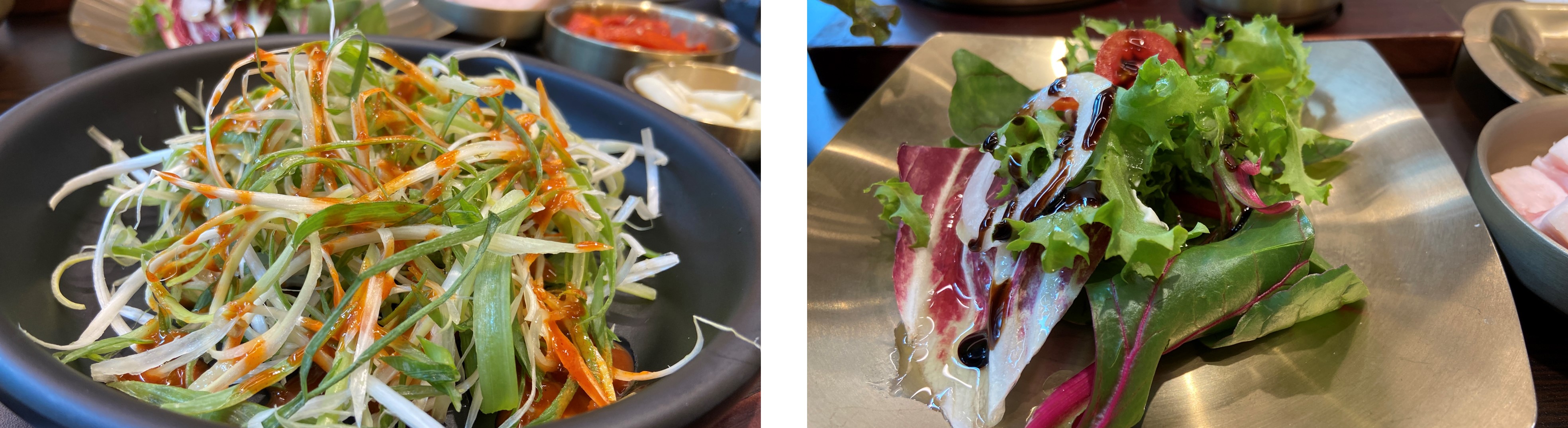 잘 구워진 삼겹살과 파절임이 입맛을 강타합니다.