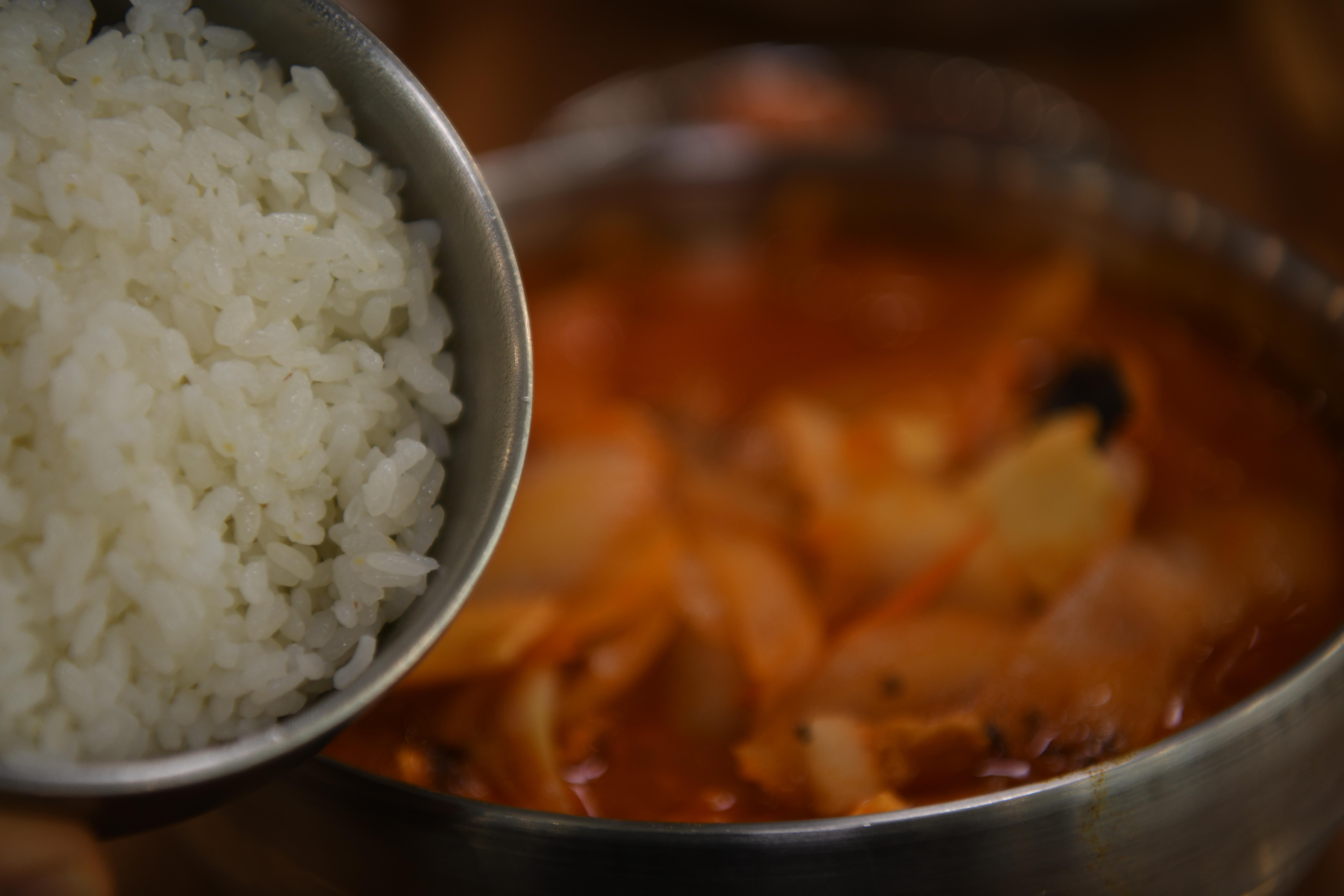 뜨거운 김 사이로 살짝 떠낸 국물 한 숟갈.