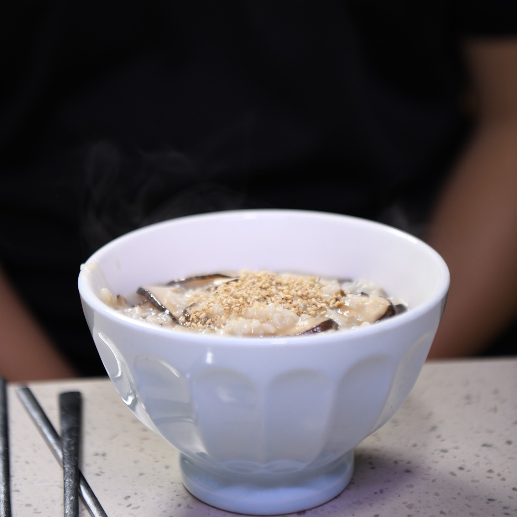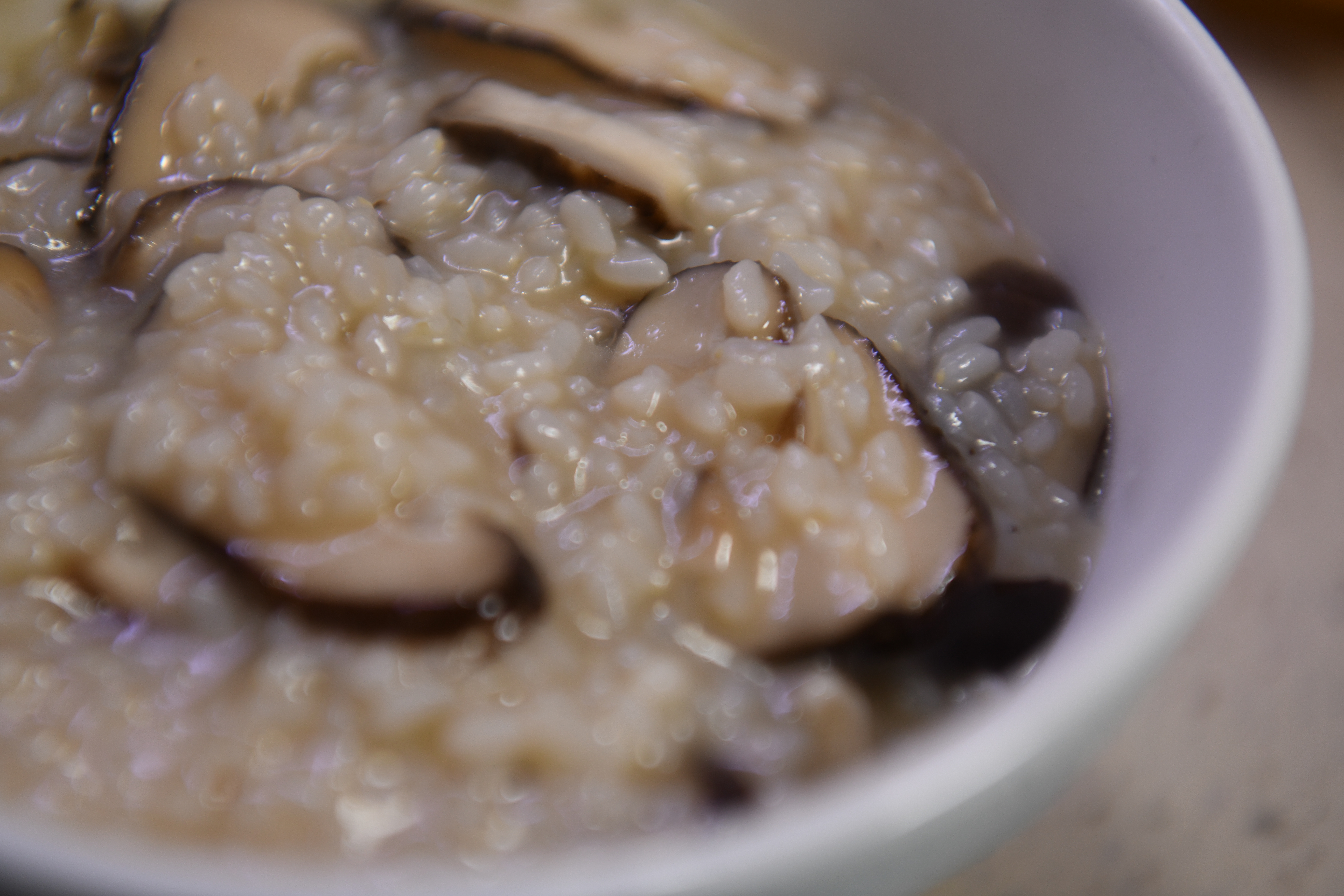 완성된 표고버섯죽은 밥알이 퍼지면서도 흐트러지지 않고, 표고버섯의 향이 국물에 깊이 배어 감칠맛이 일품입니다.