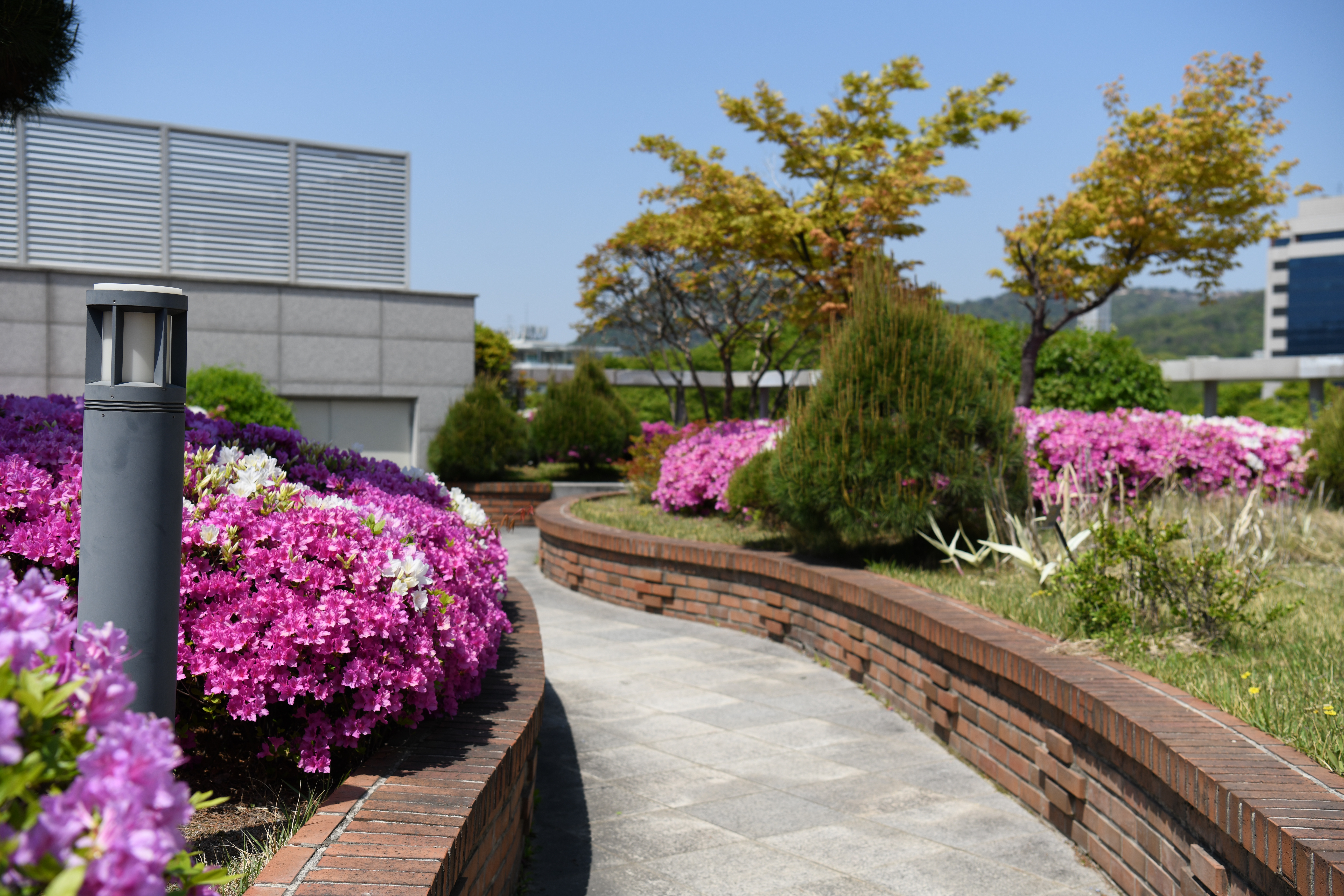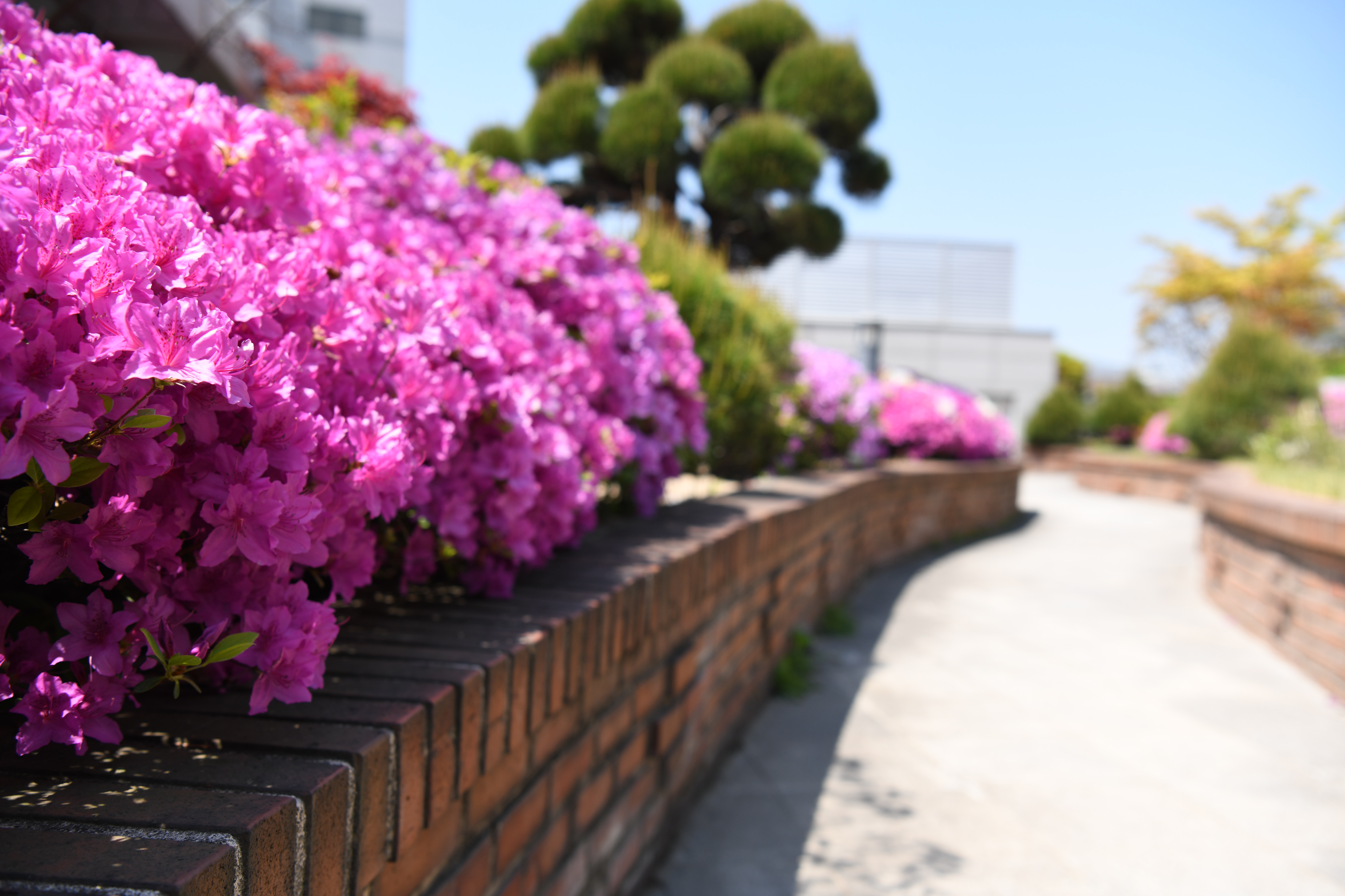 서울대 치과병원 옥상정원 산책길을 따라 만개한 자줏빛 철쭉이 흐드러지게 피어 있었습니다.