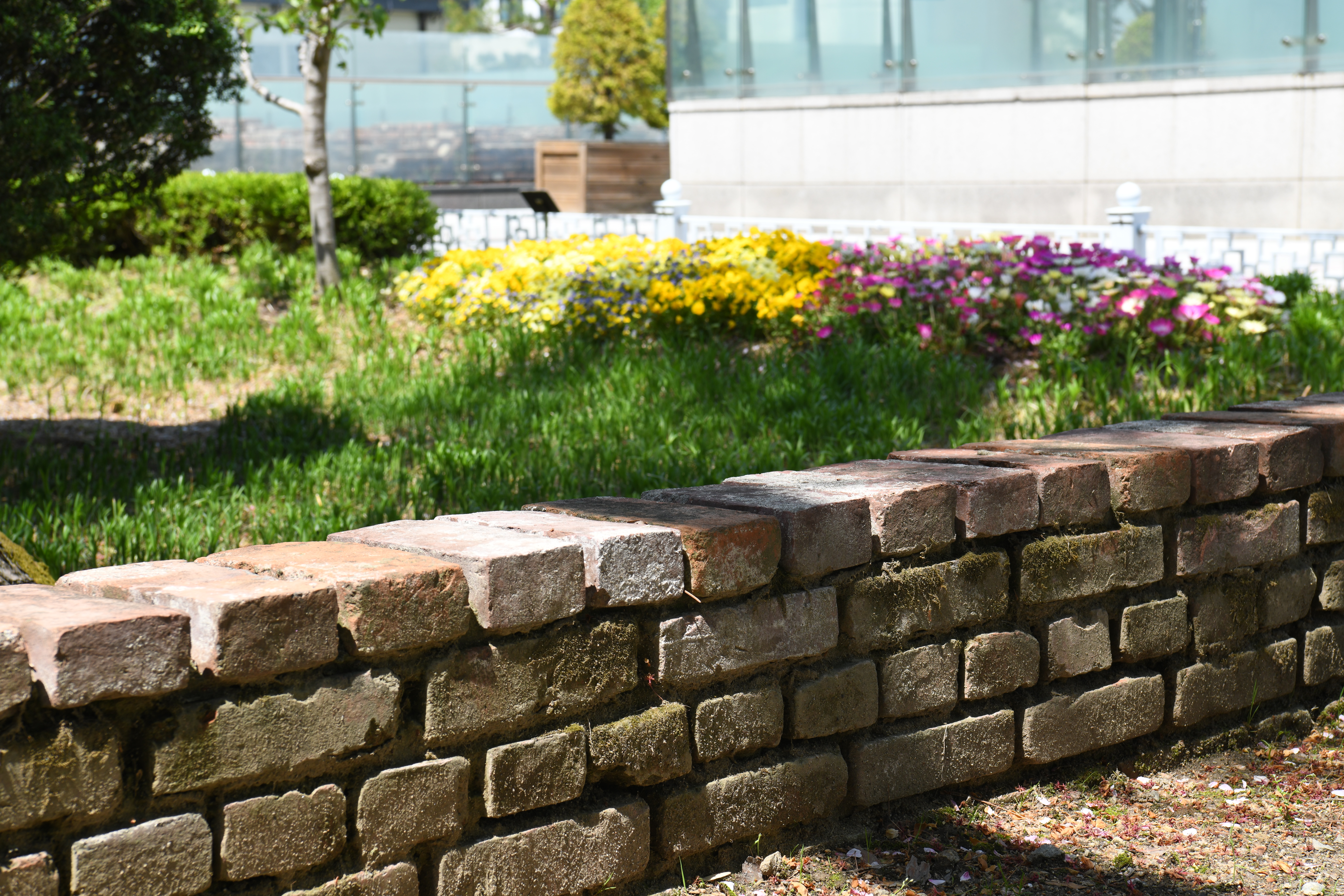 햇살을 머금은 오래된 붉은 벽돌 담장, 그 너머로 고개를 내민 형형색색의 봄꽃들.