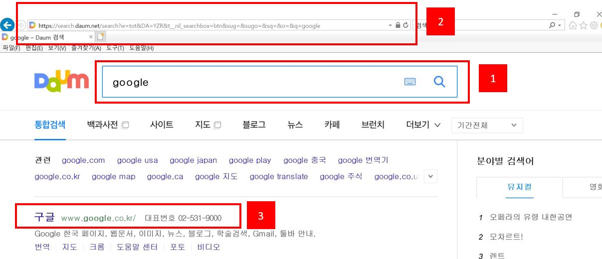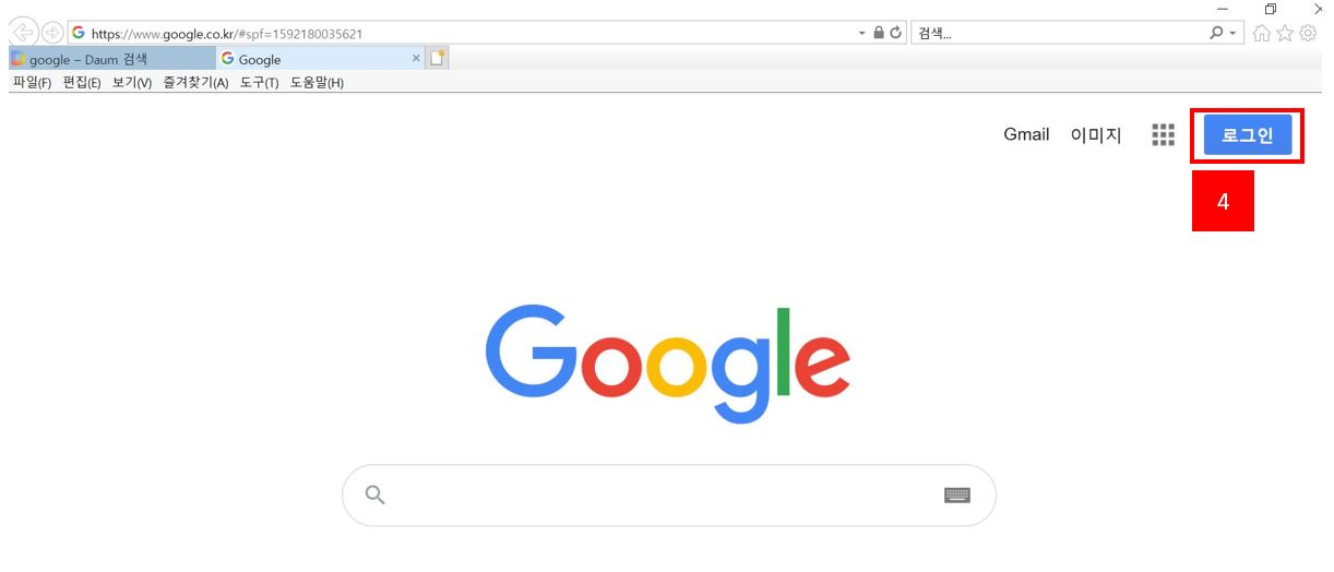 제일먼저 구글 사이트에 들어가야 합니다. 이를 위해서 아래 1번과 2번 편안한 방법을 이용하여 구글 사이트에 들어가시면 됩니다. 제일 먼저 다음 포탈에 접속합니다.
