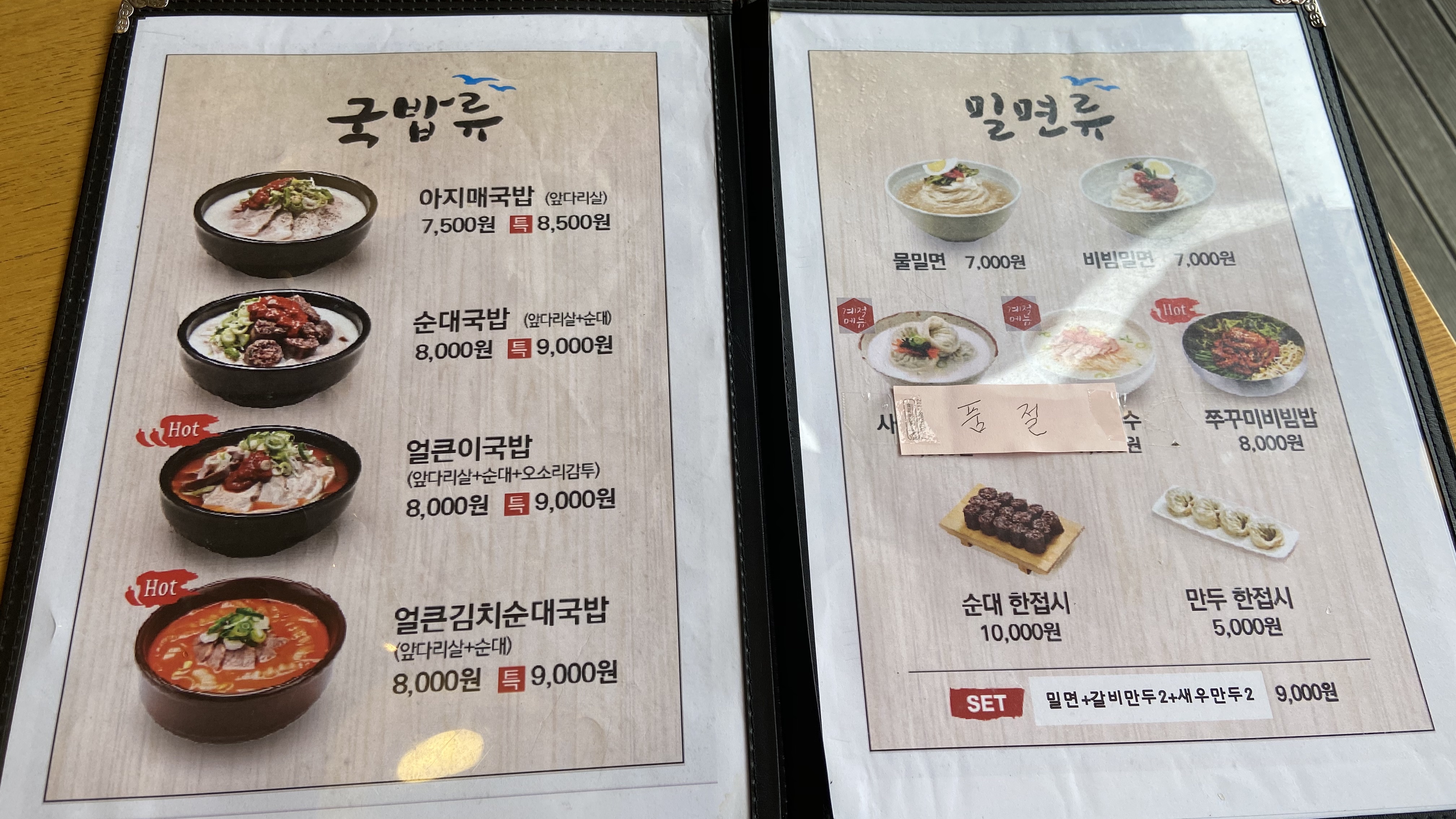 ▼ 앞에 놓여진 메뉴판을 얼큰이 국밥이 나오기전까지 확인해봤습니다.