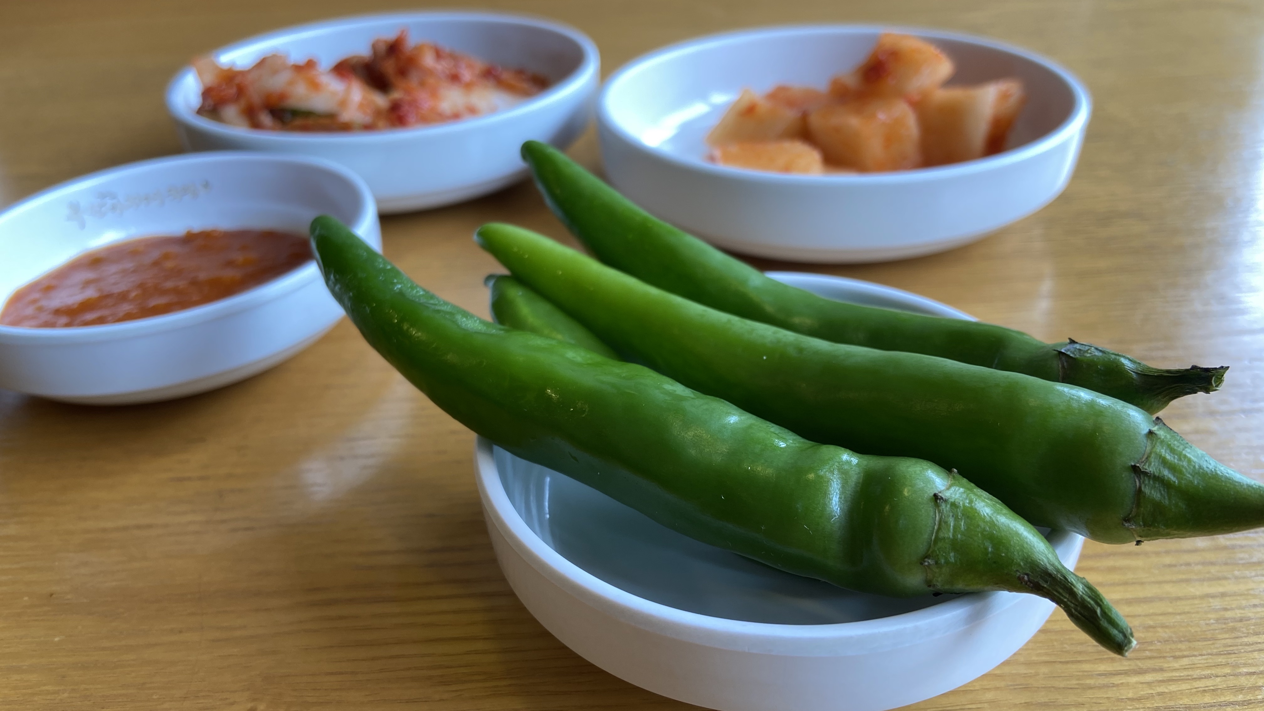 ▼ 기본적으로 풋고추를 주는데 저는 청양고추를 부탁드립니다. 그러자 친절한 직원분은 다진 청양고추도 필요한지를 묻는데 참 친절한 음식점입니다. 청양고추인데 저에겐 그다지 맵지는 않아 조금 아쉬웠습니다.