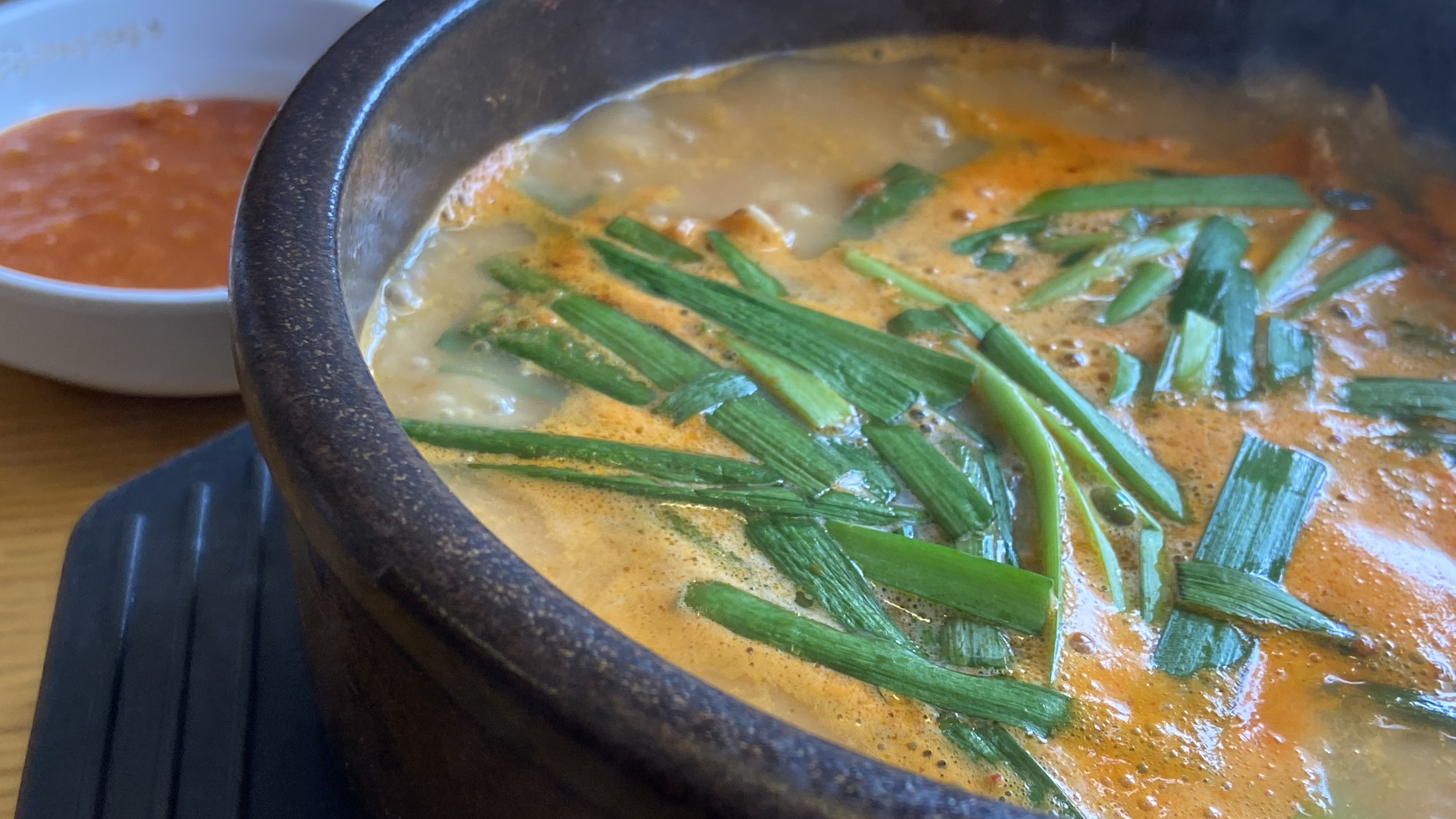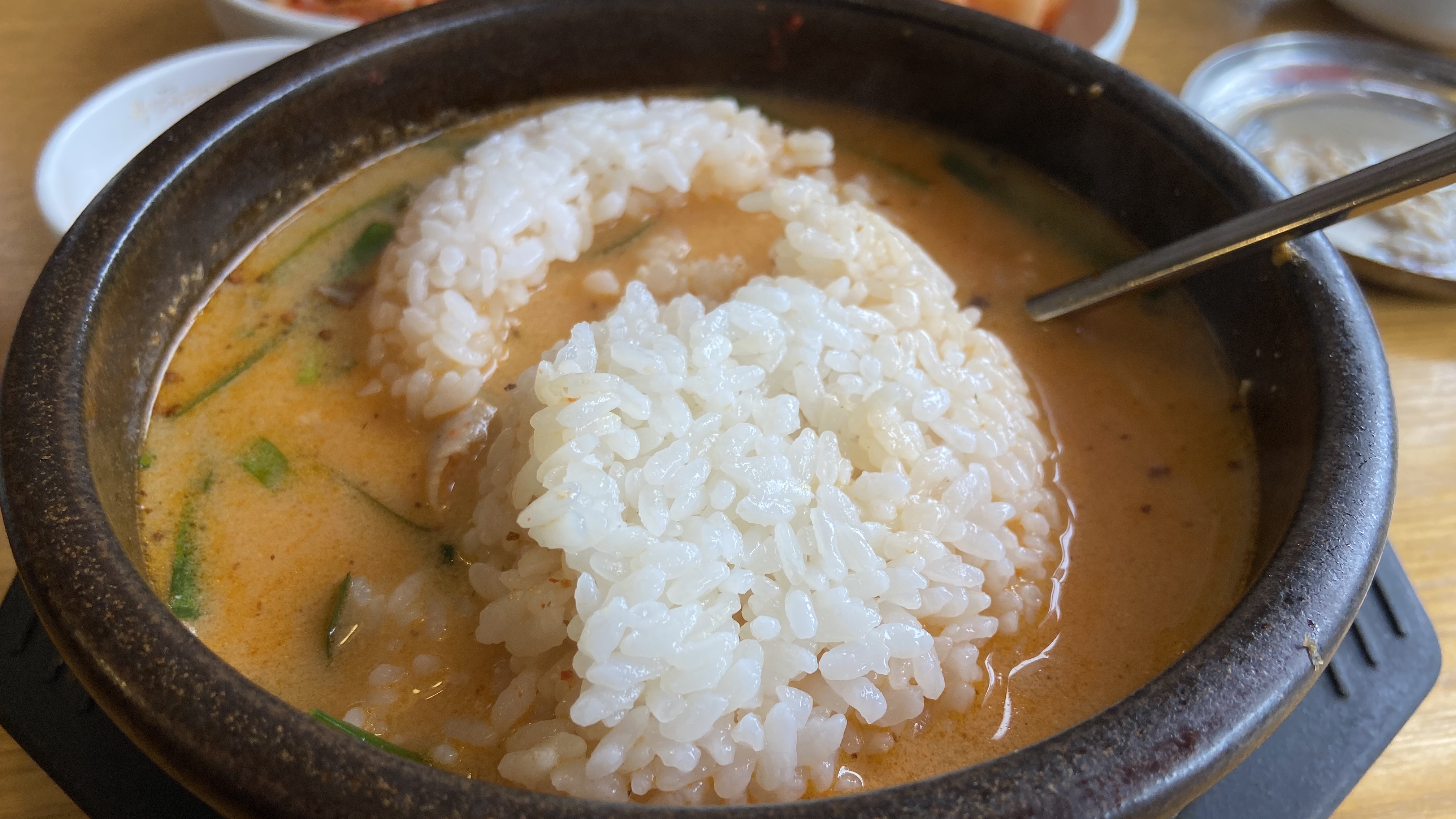 ▼ 확대한 얼큰이순대국입니다. 뜨거운 용기와 팔팔 끓는 국이 카메라 핸드폰 카메라 렌즈를 수증기로 사진 담는것을 막습니다. 그만큼 뜨거운 국밥이 나와서 맛을 보장해줍니다. 그릇을 다 비워낼때까지 식은 국물이 아닌 나중엔 따뜻한 국물의 국밥을 먹을 수 있습니다.