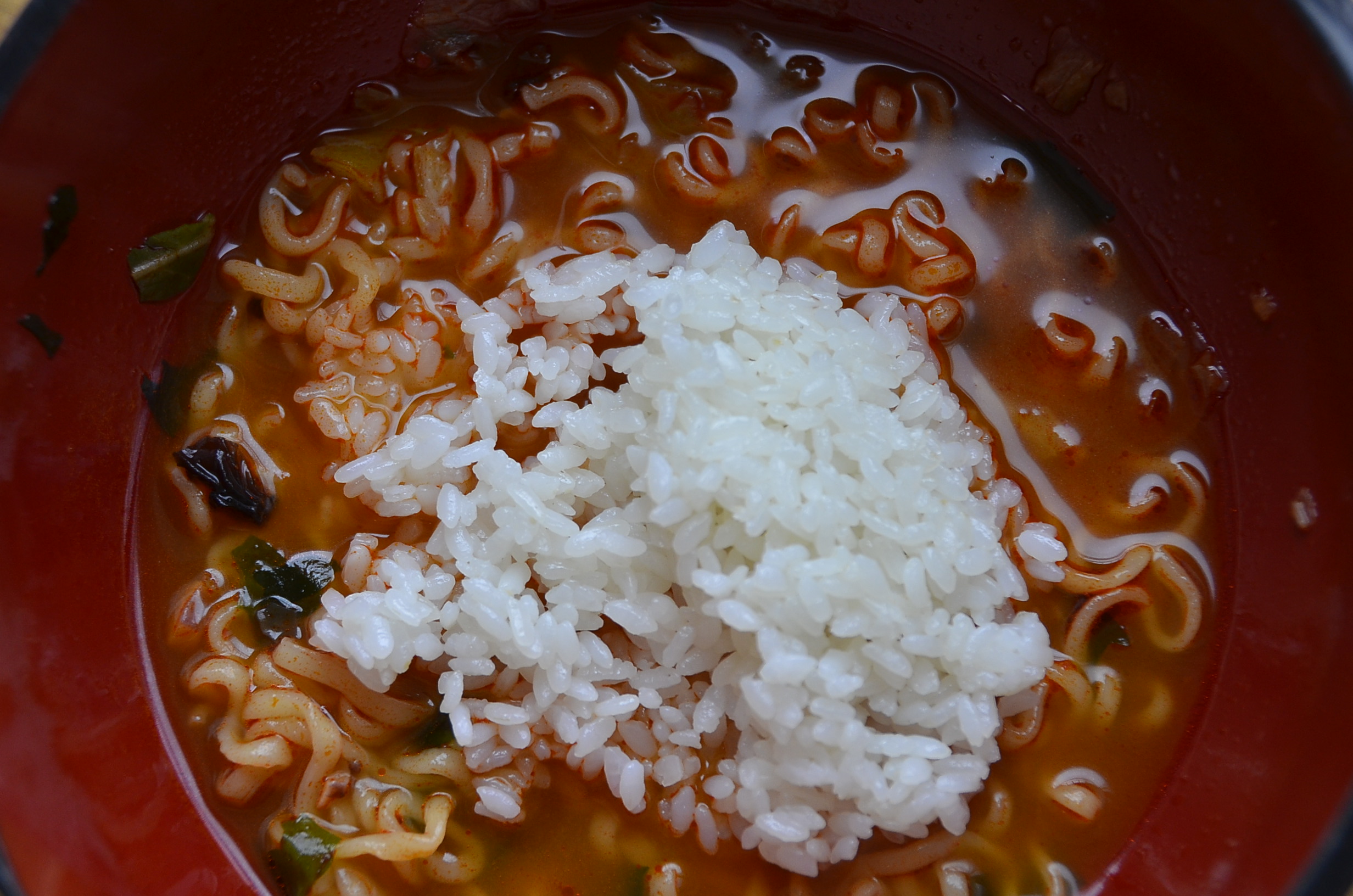 흰 쌀밥과 오징어짬뽕 라면이 만나는 순간을 사진으로 담아봤습니다. 더이상 사진으로 남길 인내심이 발생되지 않습니다. 깨끗하게 아주 맛있게 비오는날 오징어 짬뽕라면을 먹었습니다!