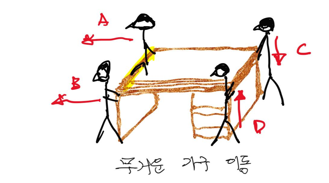어느날 직장내에서 엄청나게 무거운 가구를 이동하는 일이 있었습니다.