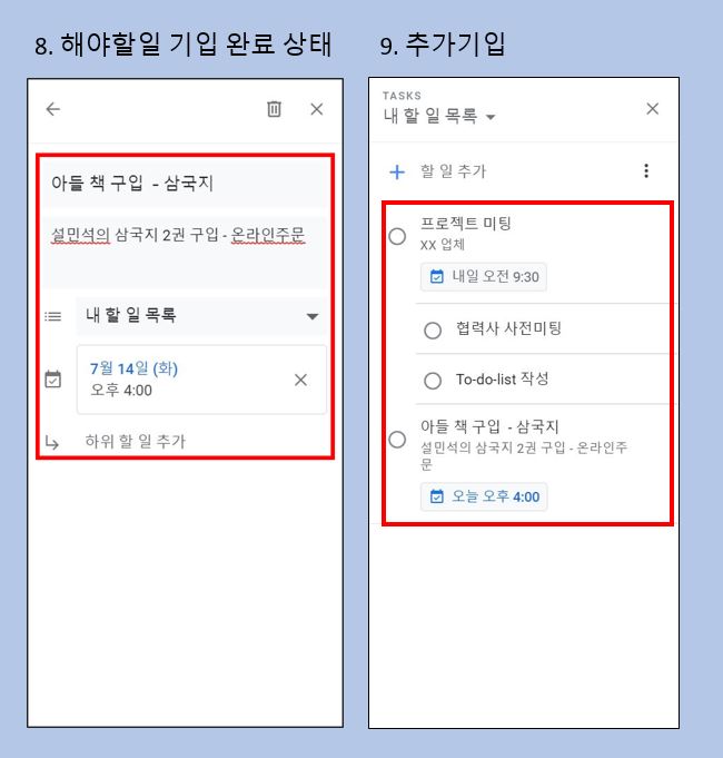 ▼ 아래사진은 제 핸드폰에 기입된 구글 태스크가 연동된 내용을 캡춰한 사진입니다.