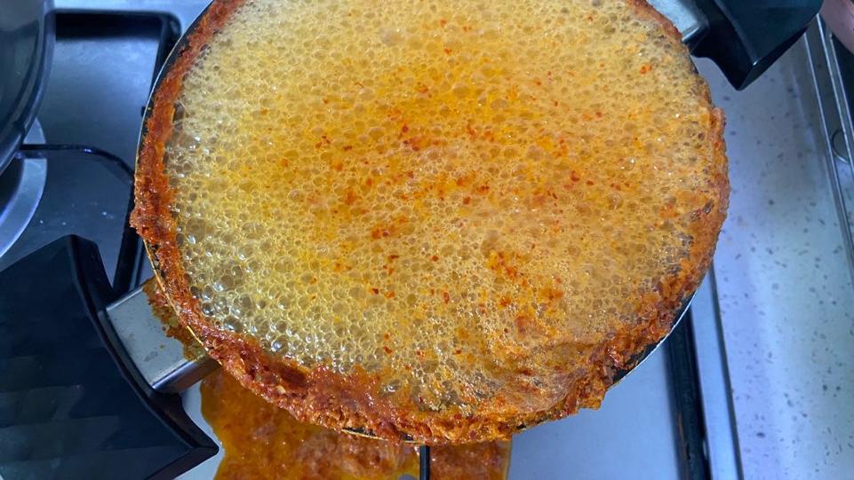 ▼ 콩나물국을 끓이다 잠시 한눈을 파는 순간에 이렇게 국이 넘쳐버립니다. 가스 레인지 위가 콩나물국으로 온통 난리가 아닙니다. 재빠르게 수습을 합니다. 김치국물에서 나온 고춧가루들이 넘쳐납니다.