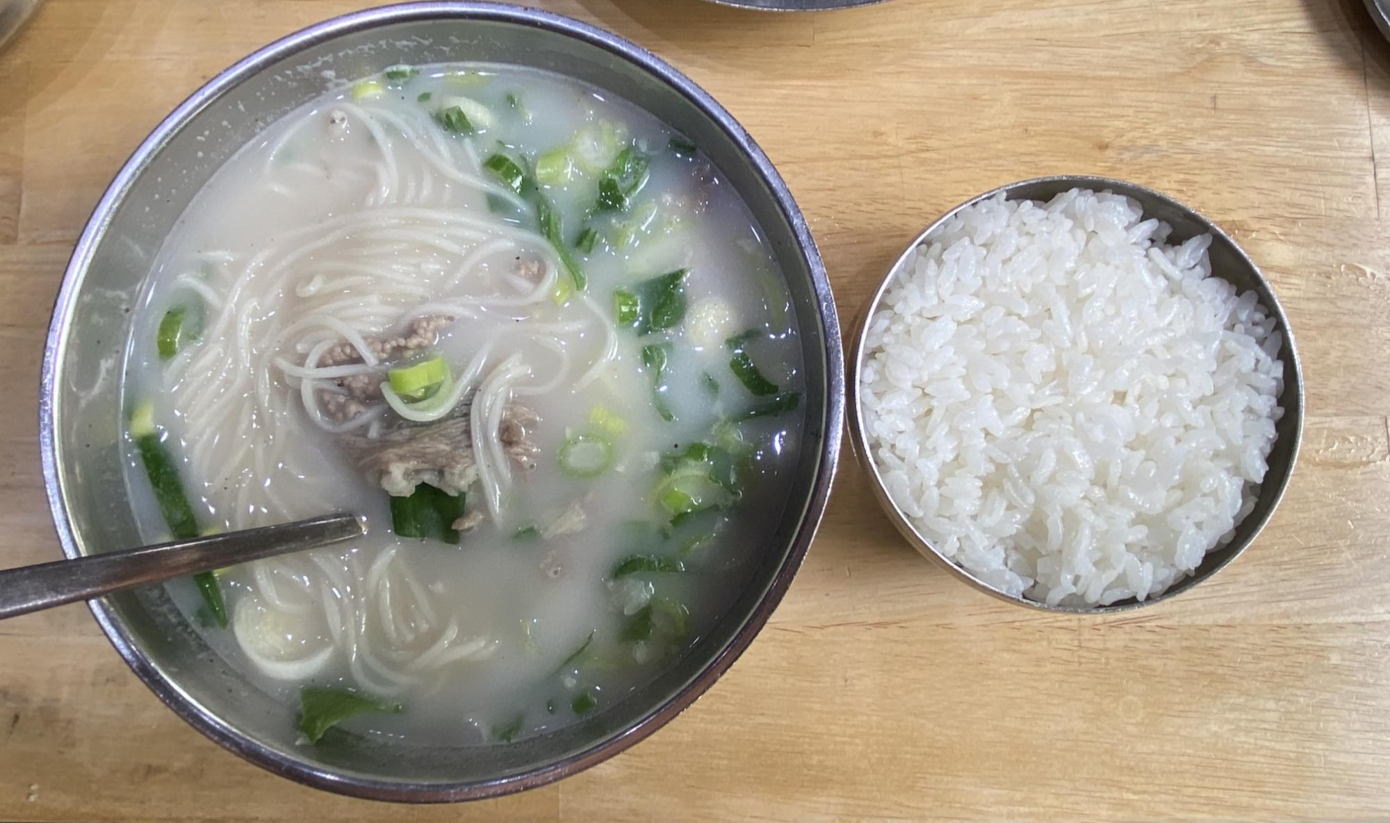 ▼ 면을 먼저 맛을 본 후 본격적인 공깃밥 투입 전입니다. 곰설채 설렁탕의 공깃밥은 정말이지 꽉꽉 누른 양이 참 큰 공깃밥이 나옵니다.