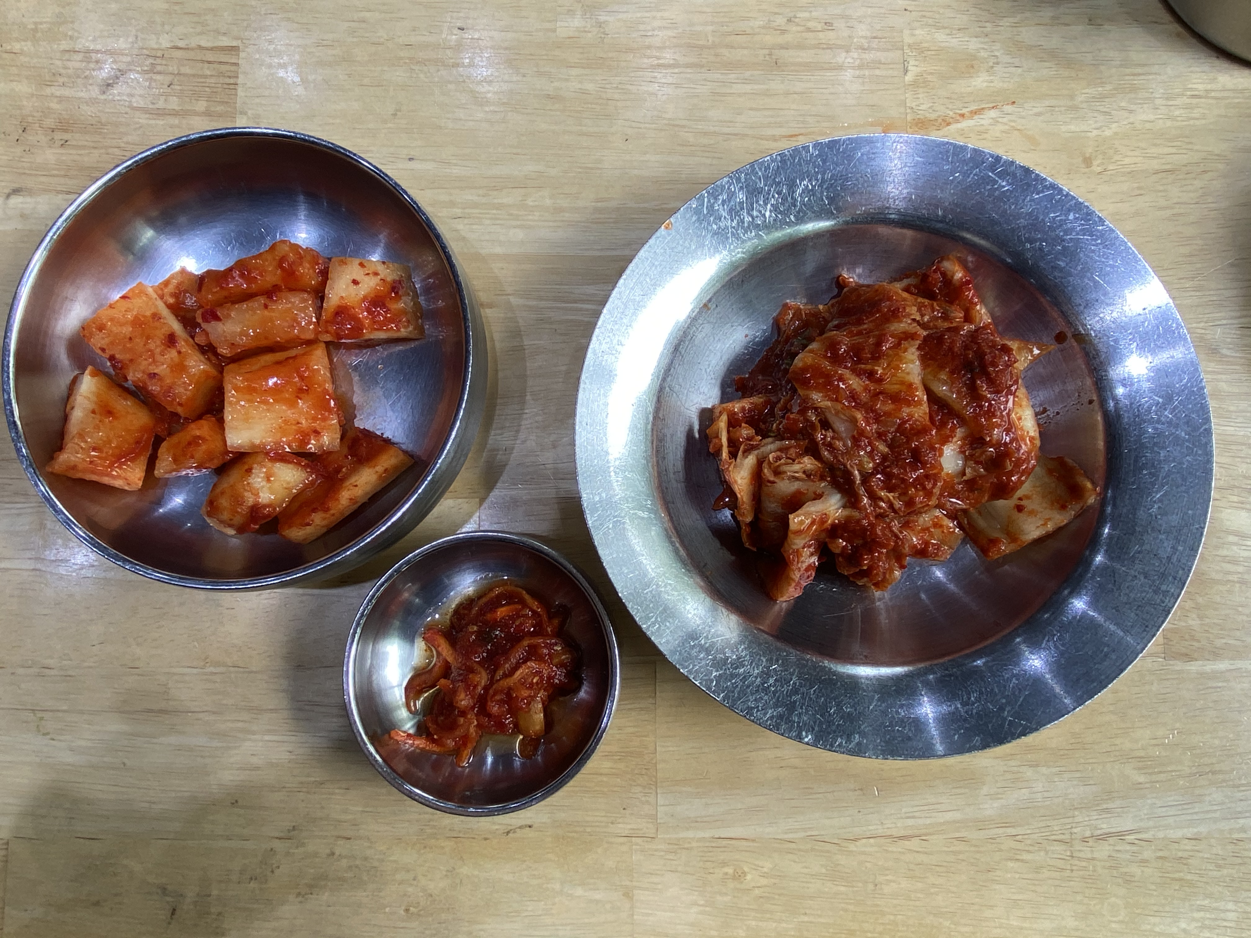 ▼ 용기에서 깍두기와 김치를 빼내어 먹기 좋은 크기로 집개와 가위를 이용하여 자릅니다. 이 반찬들을 설렁탕에 밥을 말아먹으면 맛이 정말 좋습니다. 아무리 생각해도 깍두기와 김치를 만든 우리 조상들은 위대한 조상입니다.