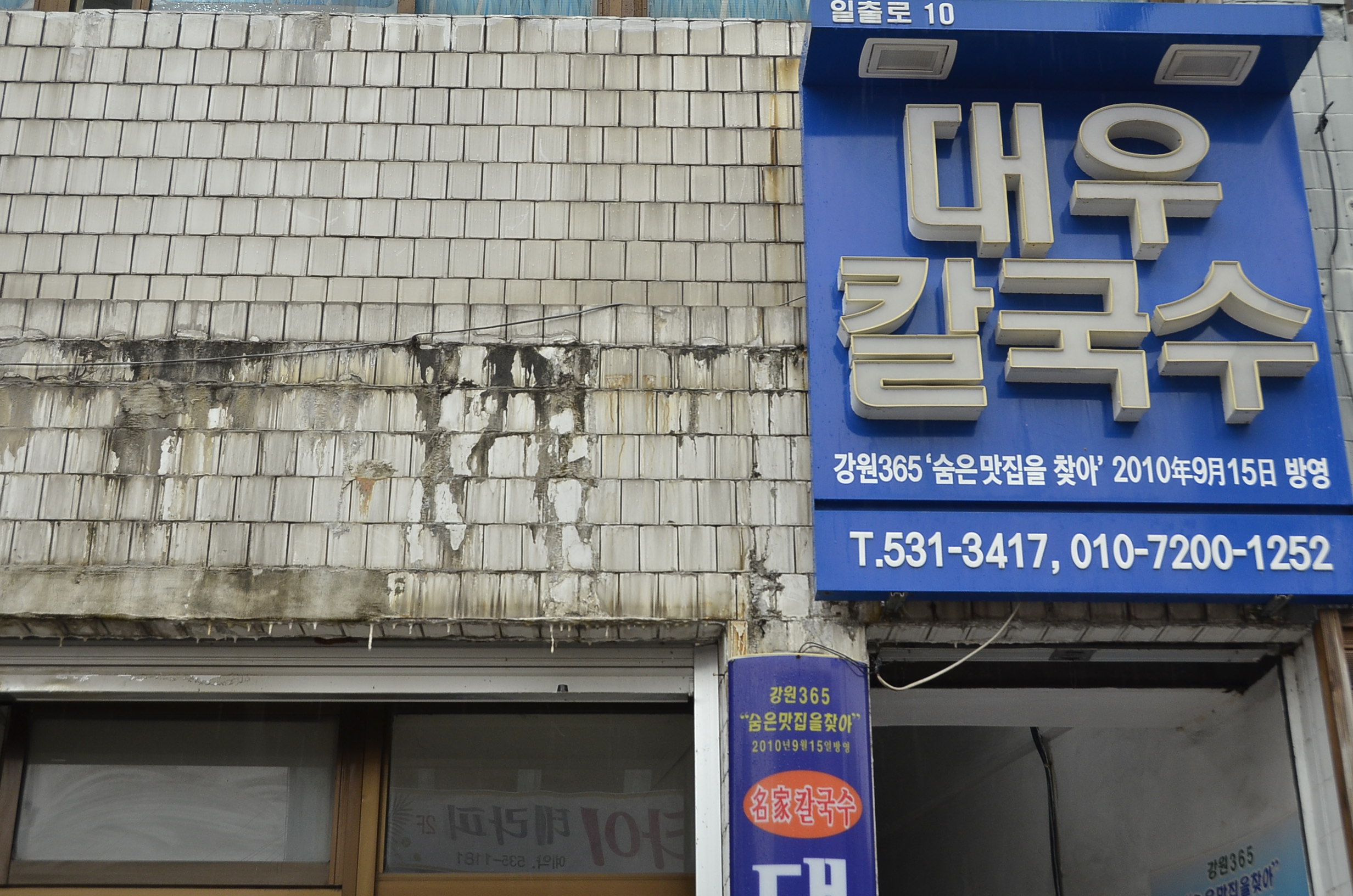 ▼ 대우칼국수는 묵호항에서 동해시 방향으로 조금만 더 가면 종합가구 할인매장이라는 커다란 아치형 광고판이 있는 바로 옆 건물에 위치해있습니다. 강원도 365 '숨은 맛집을 찾아'라는 방송에 10여 년 전에 나왔나 봅니다. 그보다 훨씬 오래전부터 동해시민들과 묵호항 내에서 칼국수로 유명한 맛집이었습니다.