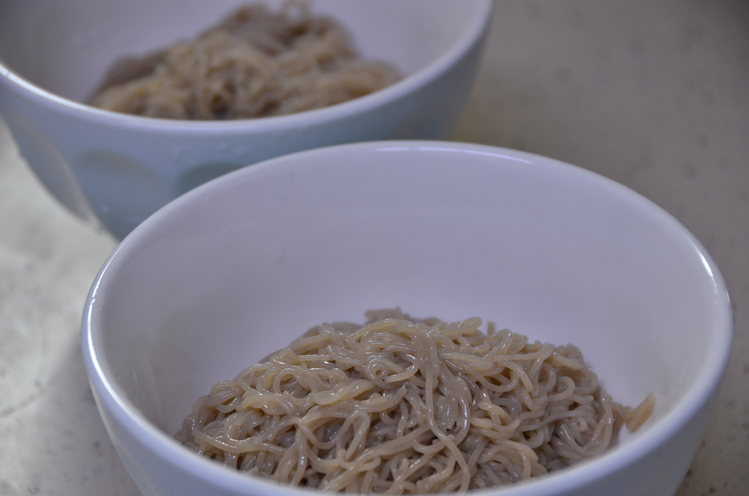 ▼ 정수기 냉수를 이용하여 3번 넘게 헹군 냉면과 아래 우측 사진은 물기를 짜낸 면입니다.